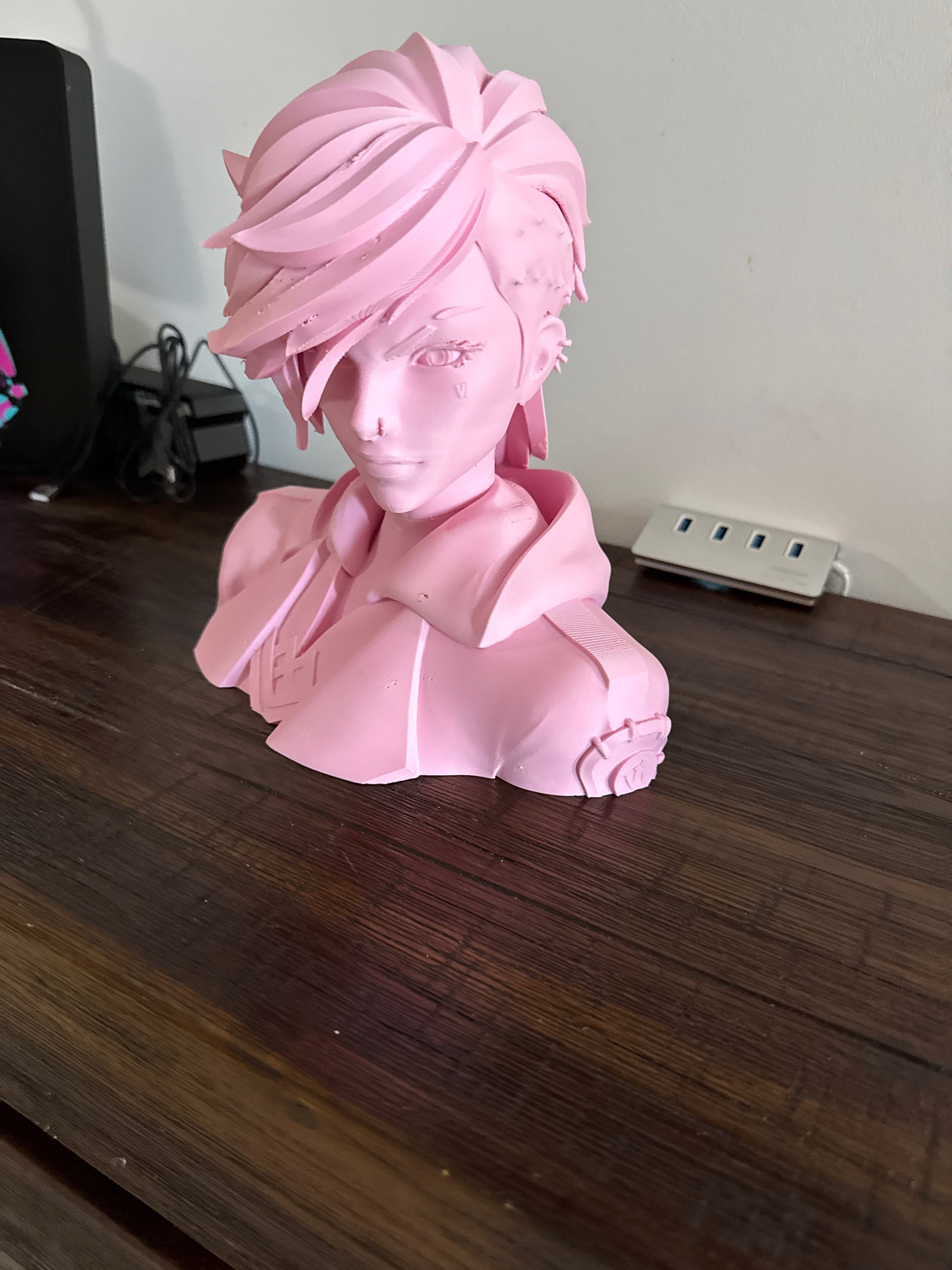 The rebellious enforcer comes to life in this striking turquoise bust that perfectly captures Vi's defiant expression and iconic hairstyle. Every detail is rendered with precision—from her distinctive facial markings to the subtle textures of her clothing. The bold colour choice amplifies her fierce personality while creating a stylish accent piece for any display shelf.
